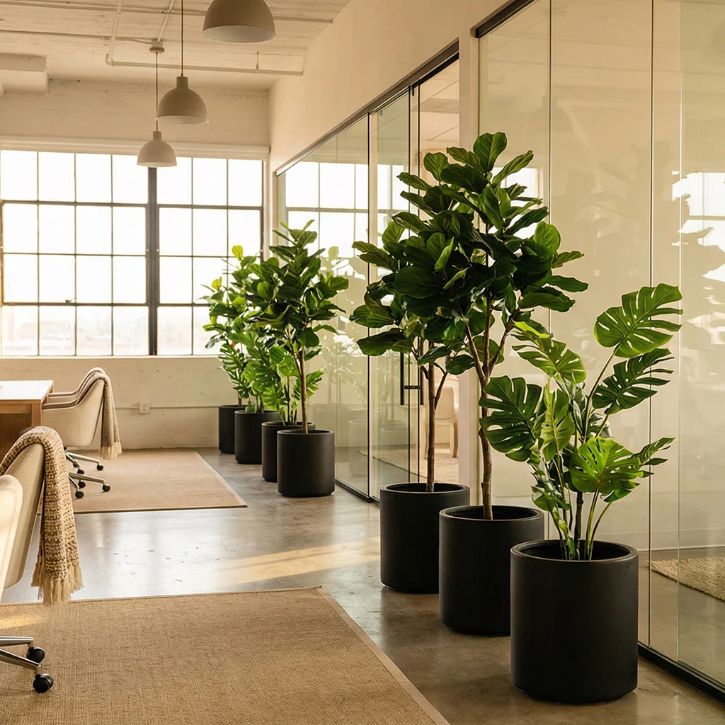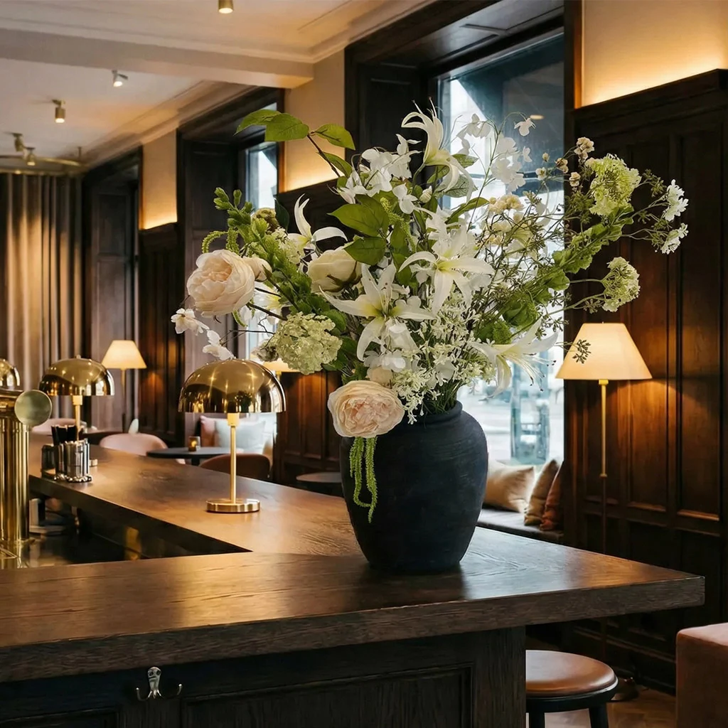 Et skræddersyet oplæg med naturtro buketter og planter i stilfulde krukker, som er tilpasset jeres rum, brand og budget, Vi sammensætter en samlet løsning i dialog med jer, der løfter helhedsindtrykket hos jer.