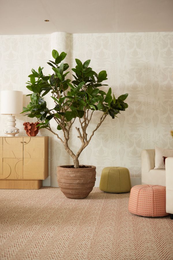 Vores Gummitræ på 180 cm giver et smukt, grønt udtryk med sine blanke, fyldige blade og en elegant stamme. Træet tilfører liv og ro i indretningen – uden at kræve pasning. Den er et oplagt valg, når der ønskes et grønt look året rundt. Allergivenlig, vedligeholdelsesfri og velegnet til indendørs brug.