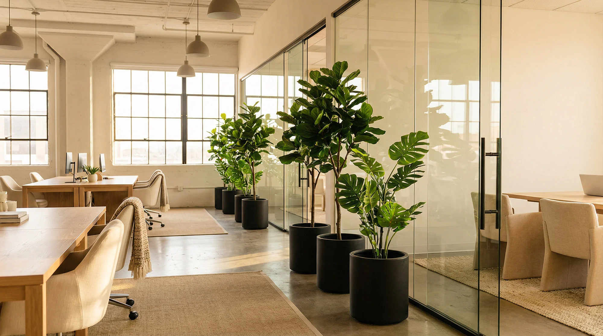 Et gennemført grønt miljø påvirker mere, end man tror. Det skaber ro og trivsel i hverdagen for medarbejdere og giver kunder og gæster et stærkere førstehåndsindtryk – især i områder som reception, mødelokaler, lounge og showroom.